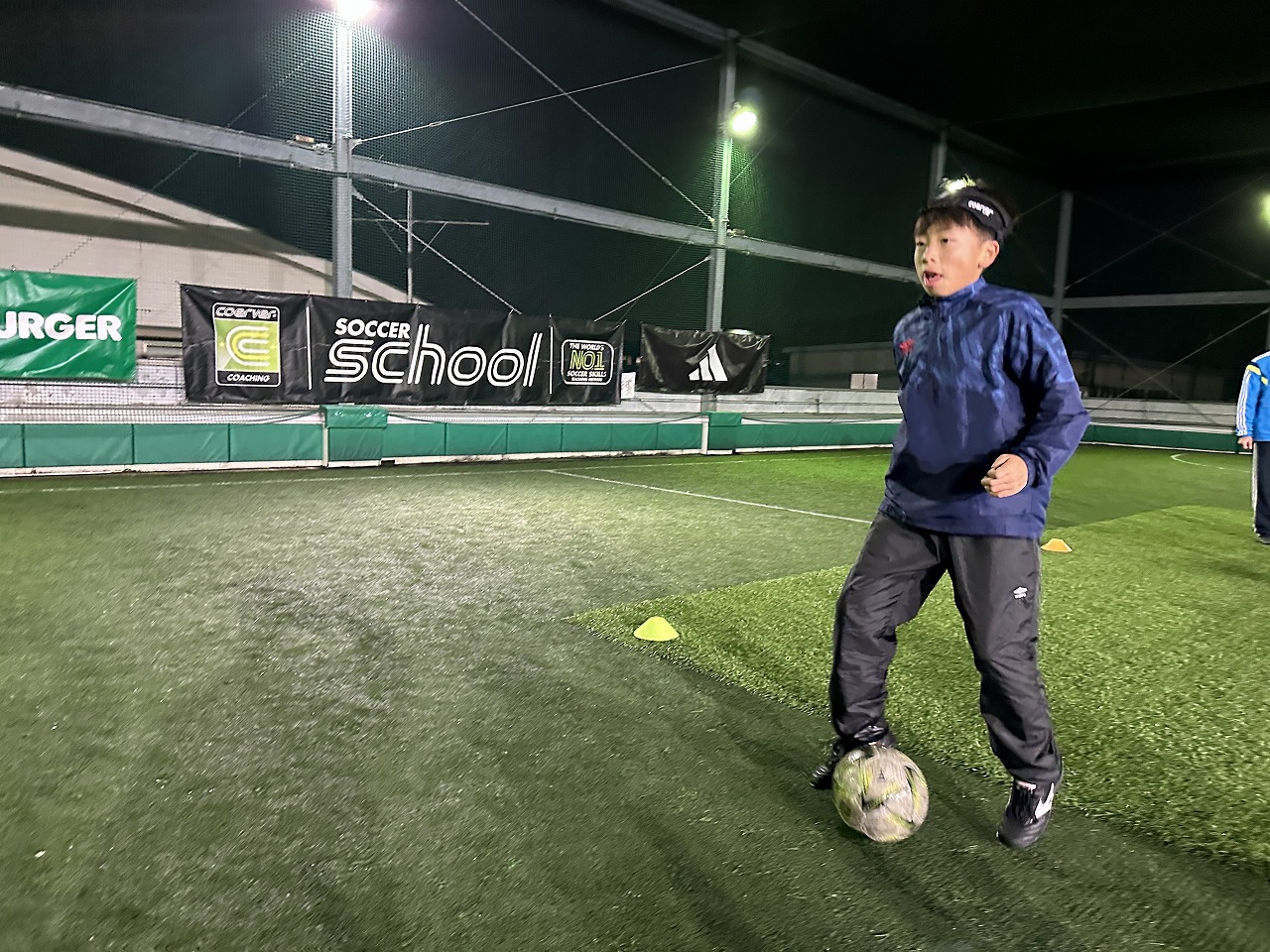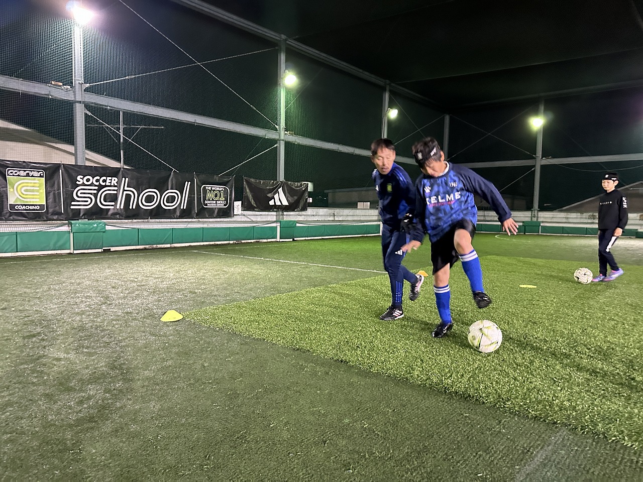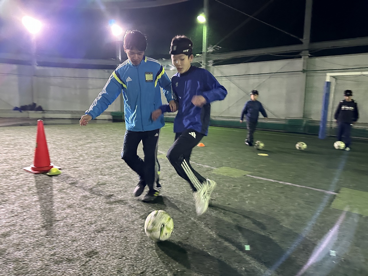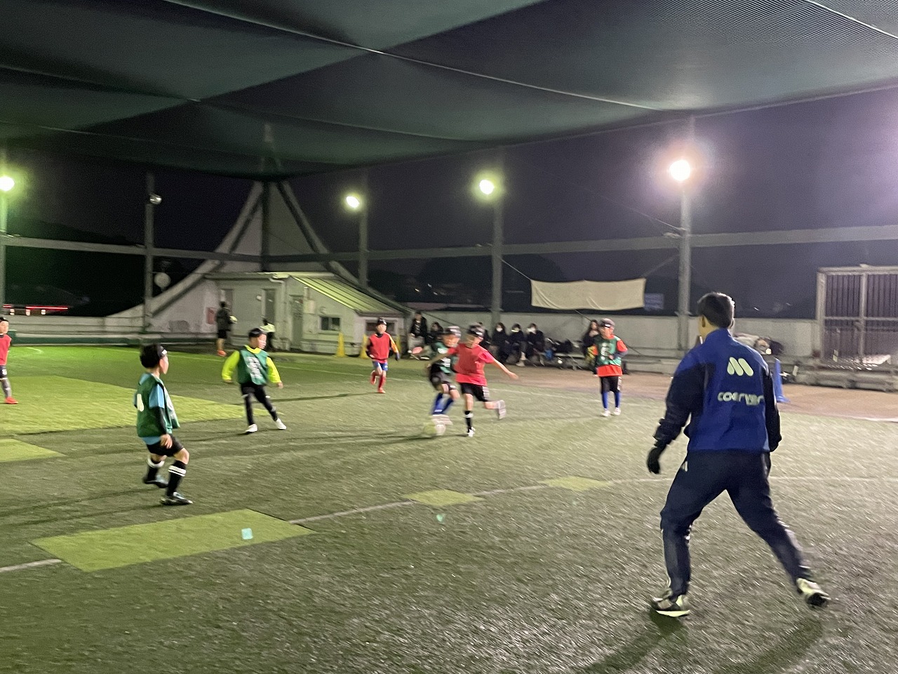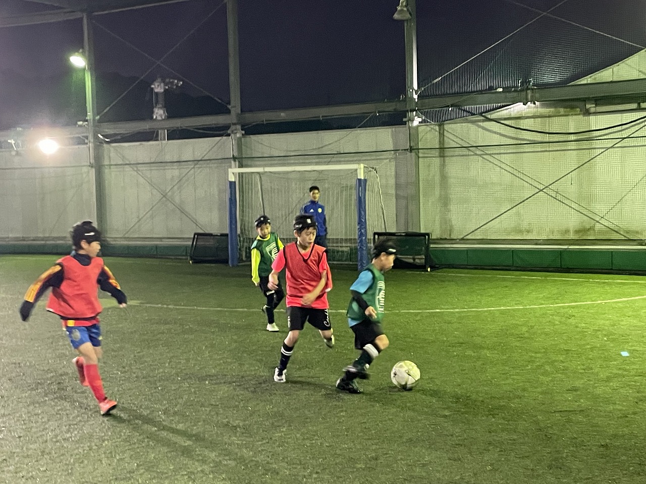 | 12月 | 「フィニッシュ|1v1~S&S(ハイ/ローウェイブ・ステップキック・ダブルタッチ)」 1対1でよりシュートチャンスをつくり、時間をかけずにゴール前でチャレンジすることにフォーカスしていきました。1対1や1対2でもシュートを狙うことや相手を引き付けたら仲間を使う選択肢を促しながらも自ら積極的にゴールを狙うことが増えていきました。 |