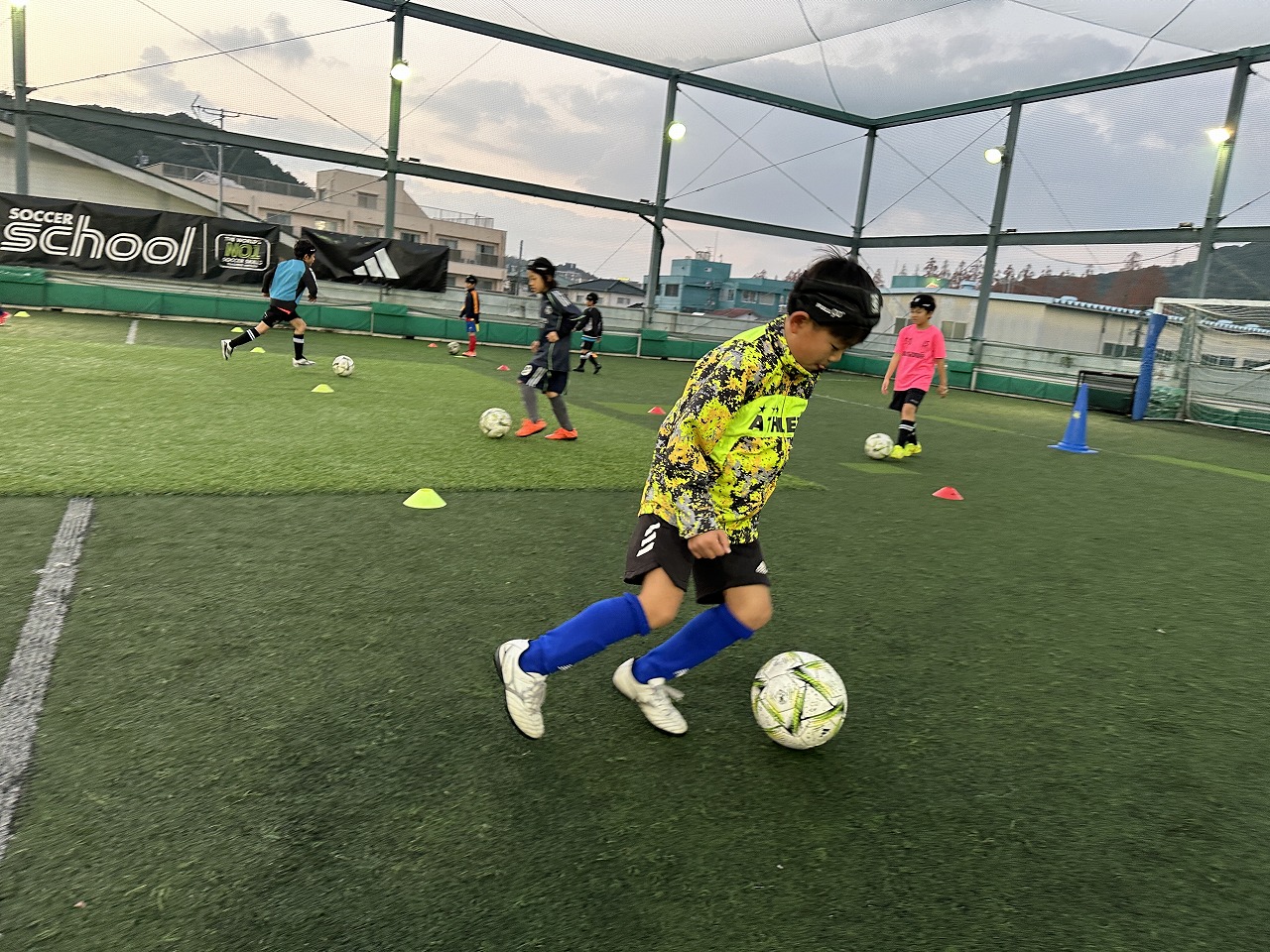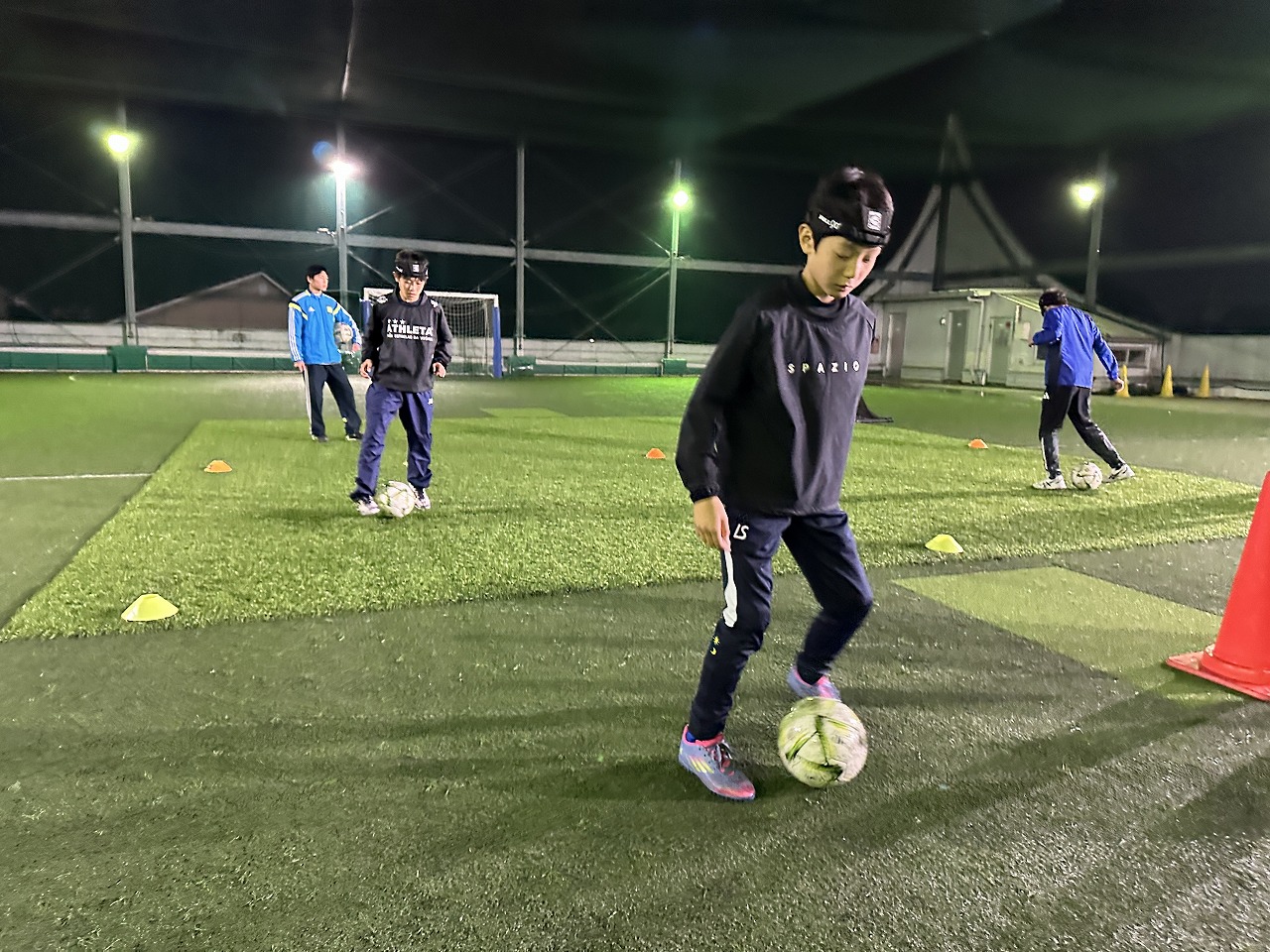 | 10月 | 「1v1攻撃 ~フェイント~(シザーズ・ダブルシザーズ・シザーズドラッグ)」 相手が前にいる時のフェイントを覚えて、相手を突破することを練習しました。突破からシュートを狙ったり、チャンスを広げたり、フェイントの後のアイズアップや緩急も実践したことで、ミニゲーム時にたくさんのチャレンジが見られ、ドリブル突破に自信を持つ選手が増えてきた印象です。 |
