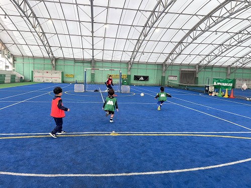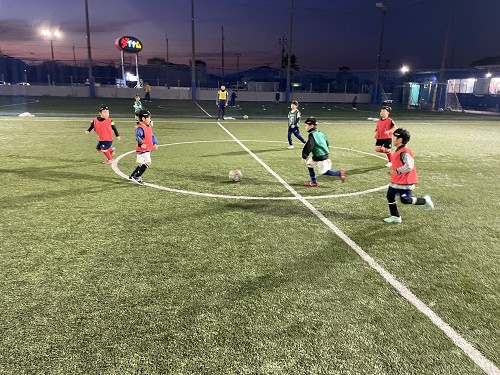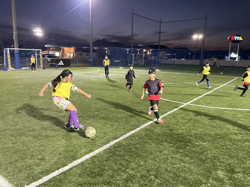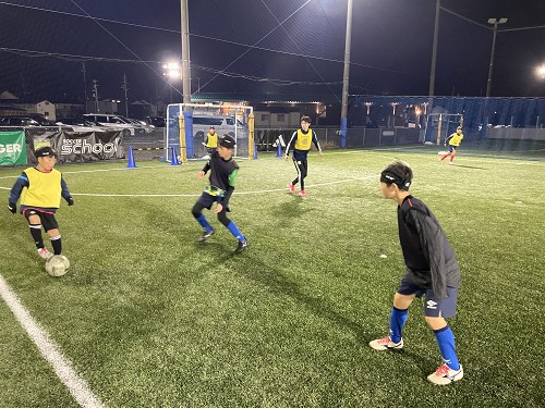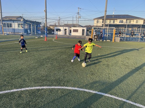 1学期に引き続き、ドリブルで運ぶ、相手をかわすことに焦点を当てながらトレーニングを行いました。直線的に相手にドリブルでぶつかってしまうことも少しずつ減り、ドリブルで相手をかわそうとするプレーが多く見られるようになりました。何より大切にボールをコントロールしようとする意識がさらに出てきたように感じます。また、1v1ムーブスの【インサイドカット】と【アウトサイドカット】【ステップオン】のトレーニングも行いました。テクニックを反復したことで、ムーブスを使って、進む方向を変えながら相手から離れ、スペースへボールを運んでゴールへ向かうプレーが見られるようになりました。