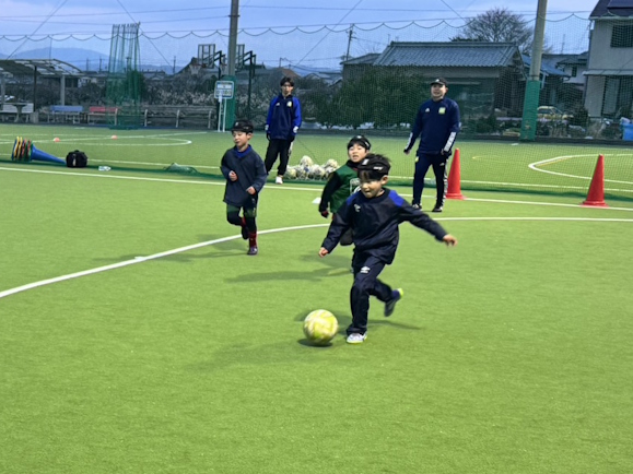 1v1とレシーブに拘ったトレーニングが多かった3学期となりました。個人の技術を身に付ける為に、ドリルトレーニングが多く、レシーブ(ファーストタッチ)は意識を高く持ち、自分でボールを自由に動かせるようなプレーを目指しました。試合では、自分からボールを受けるアクション(オフの動き出し)が多くなり、止まってボールを受けることが減ってきました。また、コーチたちは、子供たちが積極的にチャレンジ出来るような声掛けを心掛けています。良いプレー(ドリブル突破、シュートを打つ、ボールを奪うなど)が出来たときは、子供たちをたくさん褒めてあげてください。
