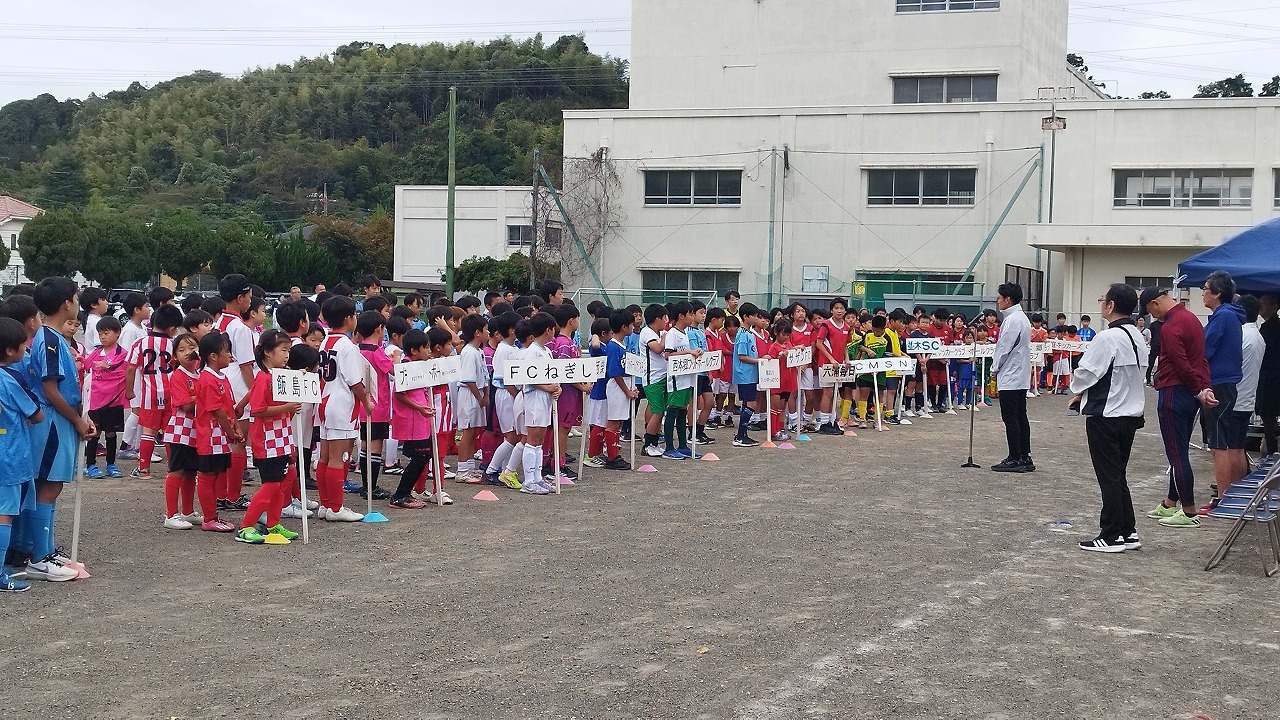 第90回あすなろ杯サッカー大会は、33クラブ、76チーム、900名が参加する大会になります。当日は大勢の参加者が参加し、盛大な開会式となりました。