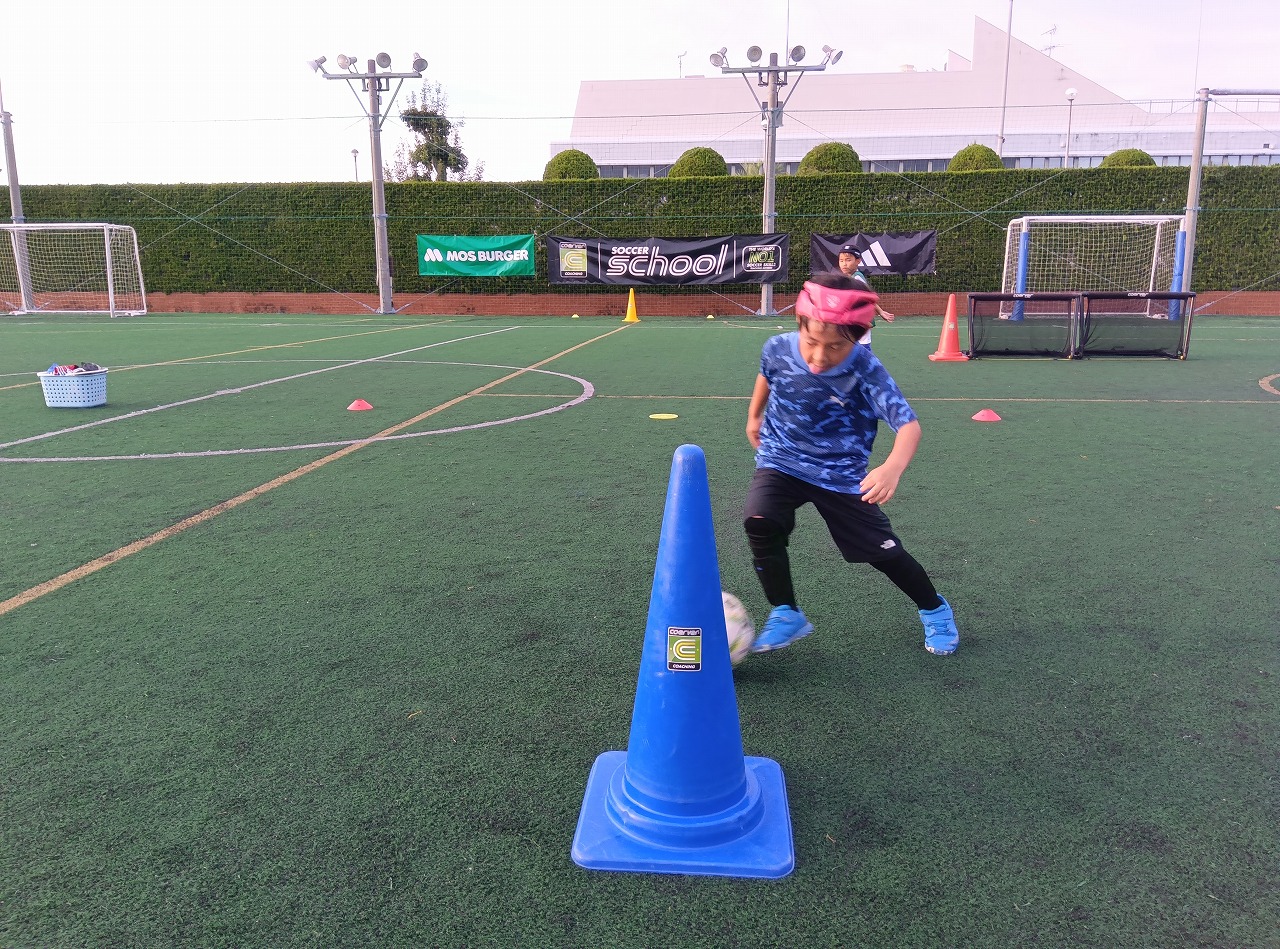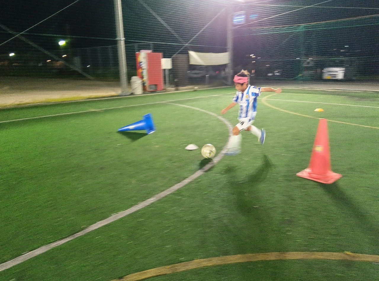 の数種類のディフェンスがいる状況でフェイントを使ってドリブル突破するトレーニングを行いました。多くの参加者がディフェンスとの距離が近すぎないことを意識して、積極的にフェイントを使って突破することにチャレンジしてくれました。