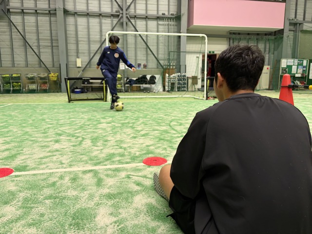 1v1では、「おへその向き」を意識するようアドバイスし、よりスムーズにプレーできるよう練習しました。