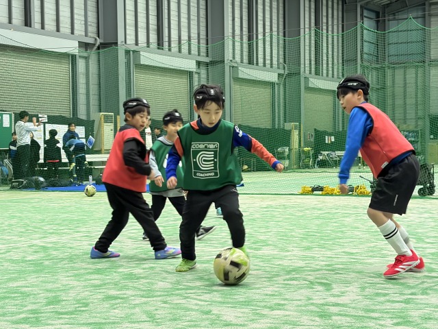 サッカーの楽しさを感じながら、コアスキルの習得に取り組みました。人数が少ないため、一人ひとりがボールに触れる機会が多く、シザースやインサイドカット等の基本的なテクニックを反復して練習しました。