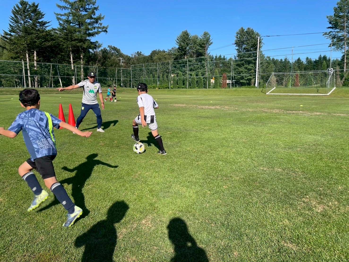 2日目は午前と午後、天候に恵まれ外のコートでトレーニングを行いました。相手が横にいる状況での1v1やグループプレーをテーマにトレーニングし、コミュニケーションを取りながら、テーマを意識して全力でプレーする選手達の姿が印象的です。