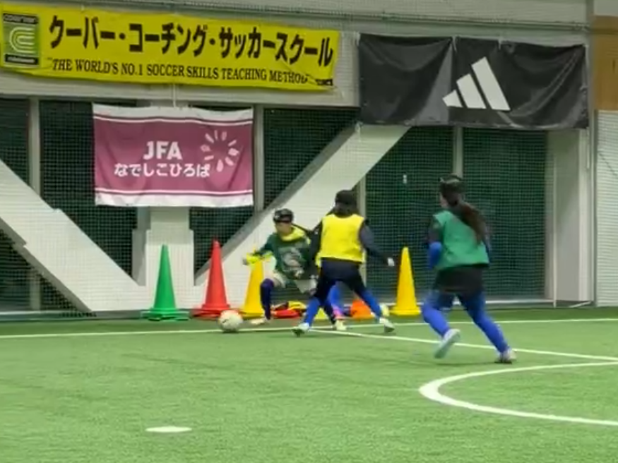 仙台校にて女の子対象イベント『ガールズコース』開催いたしました!スペースにボールを止める練習をし、トレーニングやゲームの中でチャレンジする様子が見られました。また、初めて会ったお友達とコミュニケーションを取って協力したり、競い合い、技術向上を目指しました。今回の学びを、ぜひチームやスクールでの練習にも活かしていただければと思います。