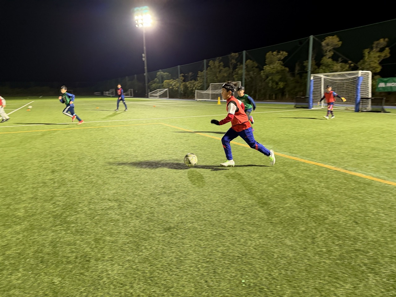 FWの選手への縦パス(クサビ)から攻撃のギアを入れ替え、サポートの予測と距離感の練習を行っていきました。トレーニングをこなしていくことで、仲間の目線やキックモーションで予測することが増え、素早いサポートからゴールチャンスを作るプレーが増えてきました。また守備への切り替えが早くなり、攻守にわたりスピーディーな展開が見られました。